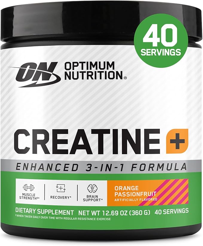 Optimum Nutrition Creatine Monohydrate Plus Powder, Orange Passionfruit Flavored Creatine Performance Blend With Electrolytes for Hydration, Added Vitamins, 40 Servings, 360 Grams (Packaging May Vary)